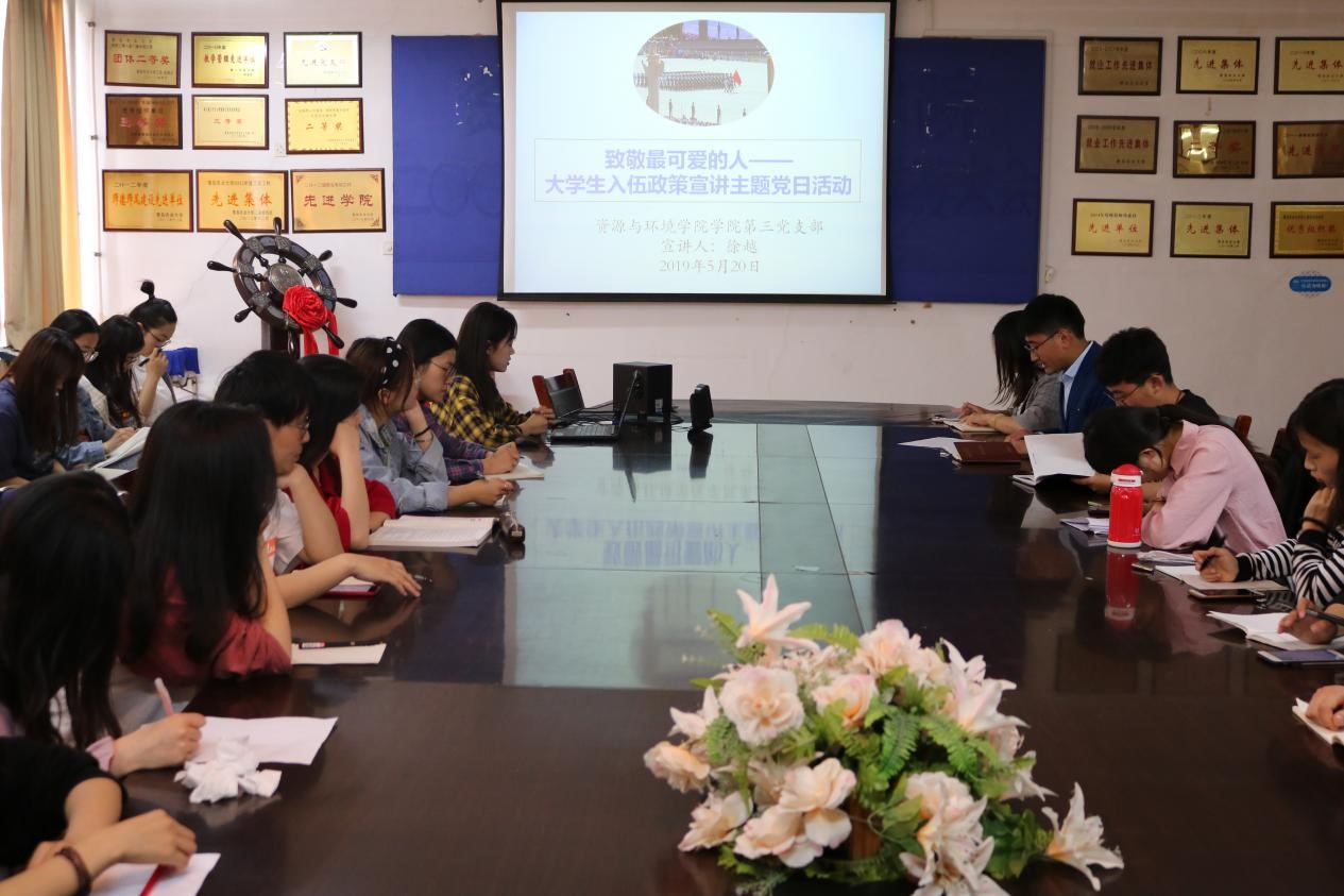 为更好地激励当代大学生积极投身国防建设,切实推进大学生参军入伍的宣传与教育,5月20日,学院第三党支部在学院会议室开展“致敬最可爱的人——大学生入伍政策宣讲”主题党日活动,第三党支部全体成员参加。本次学习活动由第三党支部书记刘春玲主持。