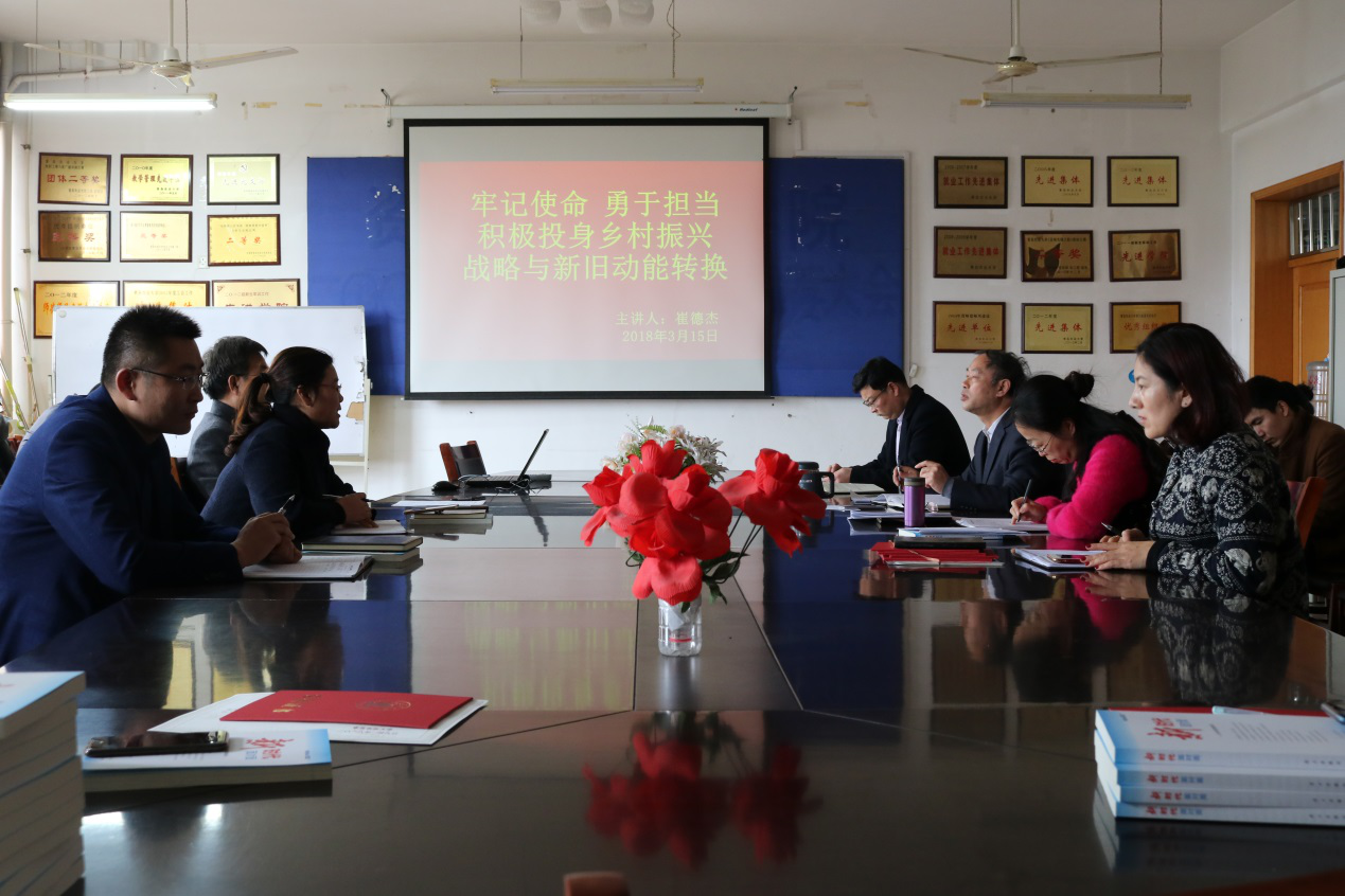 为准确把握乡村振兴战略和新旧动能转换的任务要求,3月15日,9001cc金沙以诚为本于化学楼组织全体教职工集中学习,院长崔德杰进行讲解。