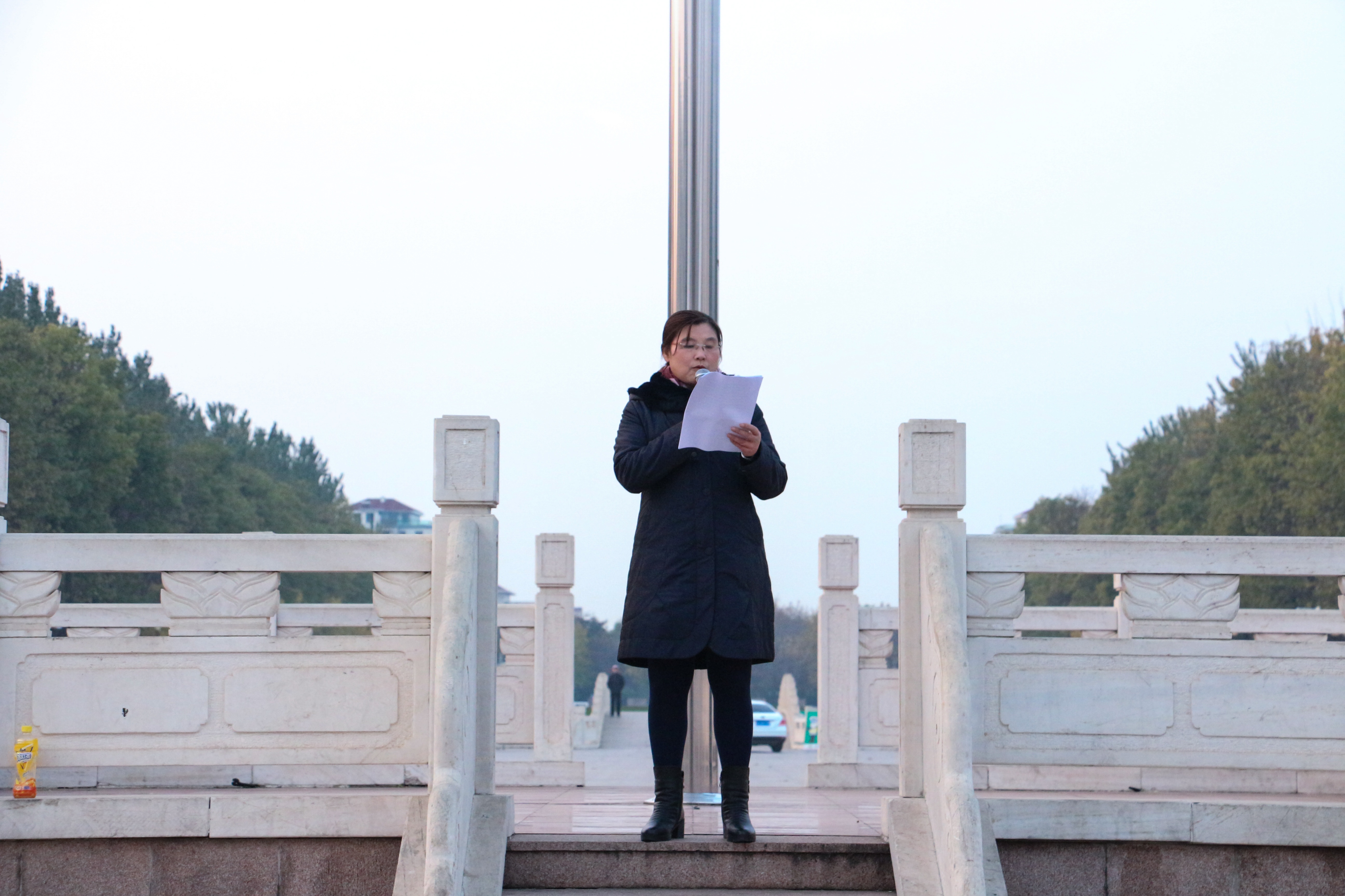 林英在国旗下发表“不忘初心,牢记使命”的演讲:身为当代青年大学生,要坚定理想信念,牢记“功崇惟志,业广惟勤”;要练就过硬本领,勇于创新创造;要矢志艰苦奋斗,坚信“宝剑锋从磨砺出,梅花香自苦寒来。”;要锤炼高尚品格,在实现中国梦的生动实践中放飞青春梦想。最后,林英重点强调诚信考试和安全问题,希望全体同学认真学习贯彻党的十九大精神,为实现“富强、民主、和谐、美丽”的中国而不懈奋斗。