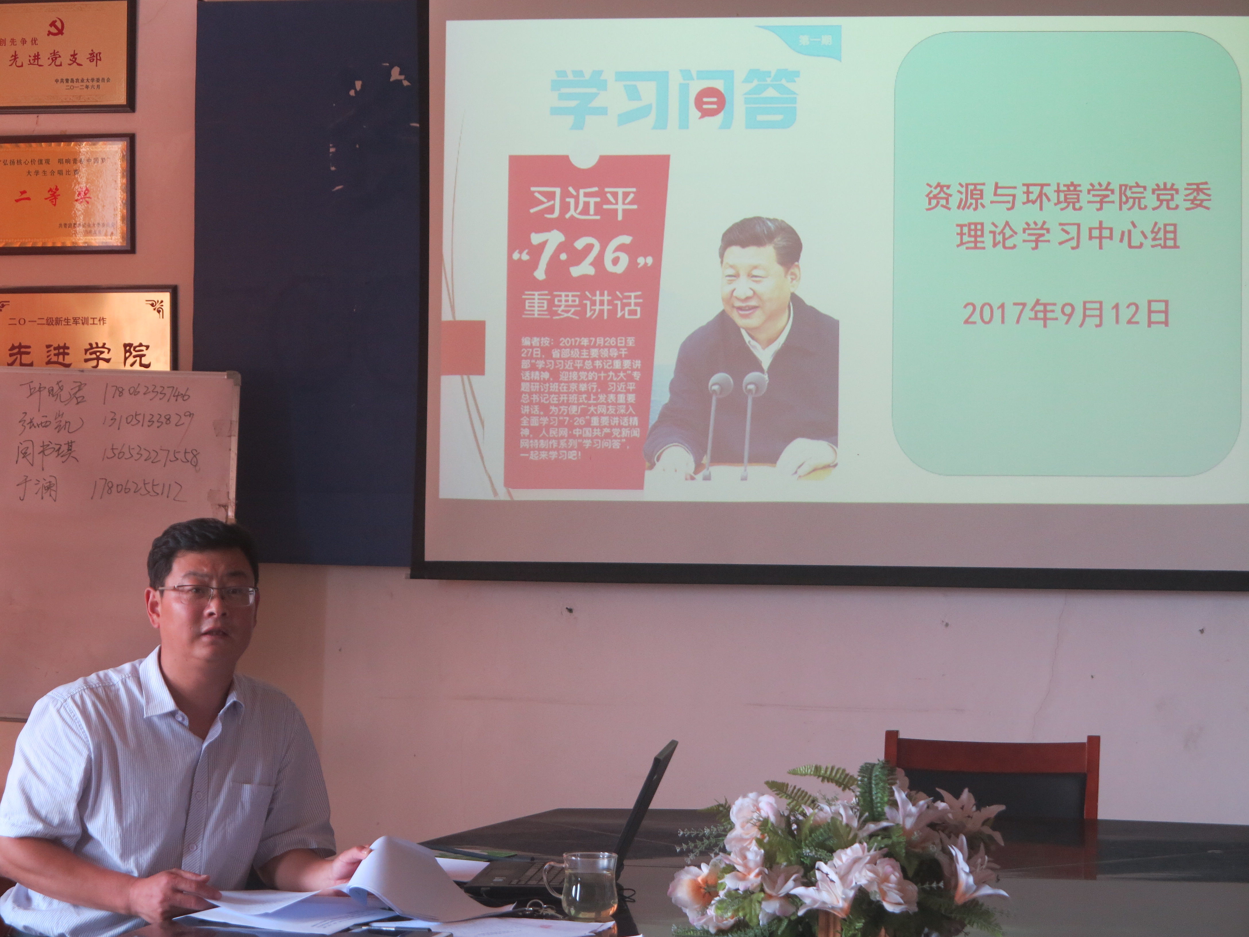 9月13日上午,9001cc金沙以诚为本党委召开理论学习中心组学习扩大会,学习会由学院党委书记孙丙高主持,学院党委理论学习中心组成员、党支部书记、教工理论学习小组长参加学习。