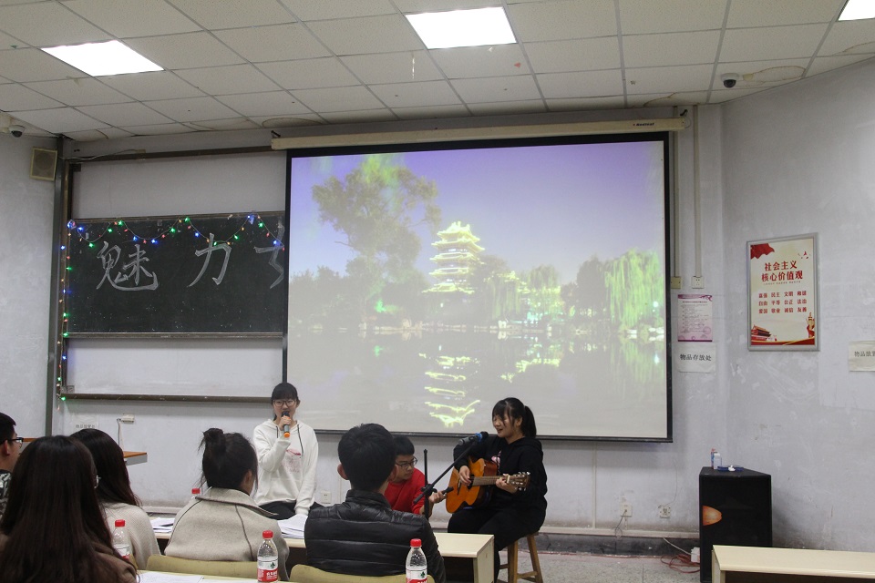 参赛者通过才艺展示,表现出女生内在的学识,技艺和修养。资环1801班带来婉转动听的歌曲《济南济南》、资环1803班带来的幽默诙谐的音乐剧《致青春》赢得现场阵阵掌声,资环D1801班朗颂的《我的南方和北方》展现了当代年轻人对祖国的无限赞美和热爱,积极向上的动感舞蹈《我又初恋了》将全场的气氛推向了高潮。每一组参赛者的表演都引人入胜,评委们本着公平公正的原则为参赛选手打分,最终环生1801班舞蹈《我又初恋了》夺得此次比赛的冠军。