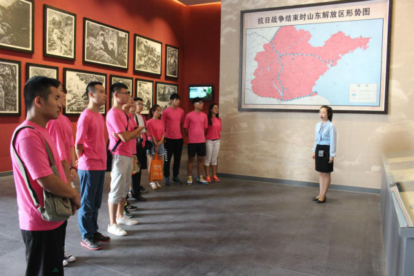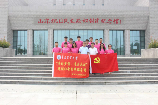 下午,实践团来到山东抗日民主政权创建纪念馆,该馆以全国第一个省级参议会和省级民主政权创建为载体,深入挖掘沂蒙抗日根据地红色革命文化,集中展现了党政军领导带领沂蒙建立政权取得抗战胜利的光荣历史。在解说员的引导与讲解下,同学们有秩序地参观了“抗日烽火、民主建政、施政为民、公仆风范、政权基石”等各个展厅,瞻仰了革命先烈,了解了他们在艰苦年代经历的生死考验、血泪洗礼。在参观过程中,同学们纷纷表示:没有革命英烈们的浴血奋战、勇于牺牲,就没有我们今天的和平、幸福生活。在血与火的革命战争洗礼中孕育形成的以“军民水乳交融、干群血肉联系”为本质的沂蒙精神,对于我们加强党的建设,传承党的薪火,弘扬优良作风,密切党群关系,推进经济建设和社会各项事业的发展,都有着重要的启迪