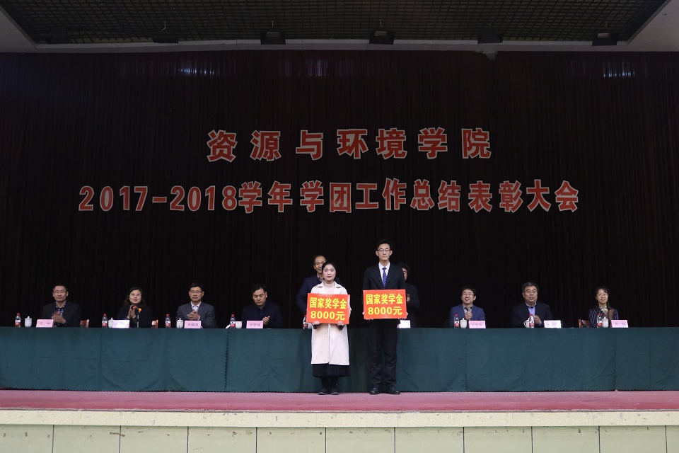 学院院长崔德杰宣读《9001cc金沙以诚为本2017-2018学年学团工作先进集体和先进个人的决定》,表彰了国家奖学金获得者、国家励志奖学金获得者、省政府励志奖学金获得者、省级社会实践优秀学生、省社会实践优秀服务队、校第三届“创青春”大学生创业大赛铜奖获得者等表现优异的学生个人和集体。工作人员宣读《9001cc金沙以诚为本2017—2018学年学团工作先进集体和先进个人名单》,与会领导老师为获奖个人和集体颁奖并合影留念。