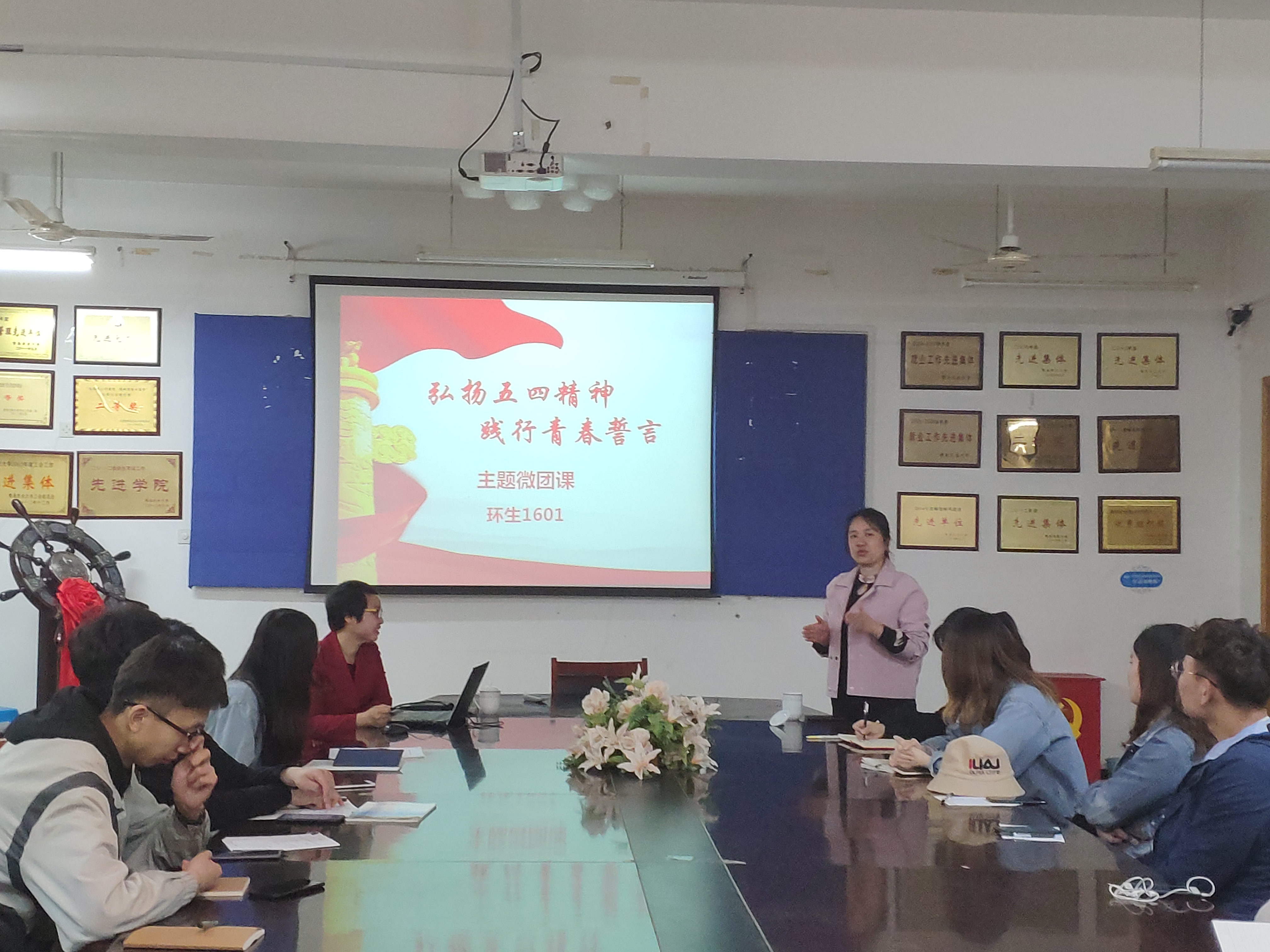 为提高同学们的科学素养和人文素养,弘扬以爱国主义为核心的民族精神和以改革创新为核心的时代精神。环境生态工程1601班团支部邀请人文学院柳敏教授在学院会议室开展以五四精神为主题的团课。