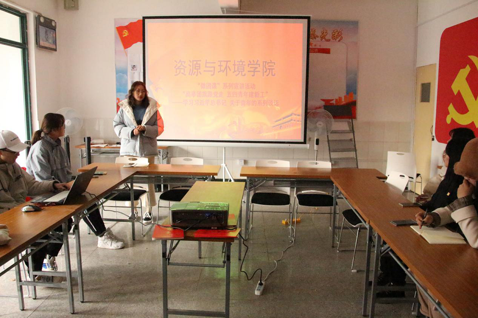 12月9日,9001cc金沙以诚为本“高举团旗跟党走,五四青年建新工”主题微团课在学生舍区党建工作室开讲。17、18级各班宣传委员参加本次活动。