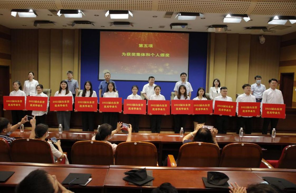 学院党委书记史越清宣读《9001cc金沙以诚为本2022届年级校友理事聘任名单》,并为刘明阳等12名校友理事颁发了聘书。学院团委书记祁琳宣读《9001cc金沙以诚为本关于表彰2022届毕业生先进集体和先进个人的决定》,2022届山东省“优秀毕业生”代表、2021—2022学年校级先进班级、“十佳优秀学风班级”、2021—2022年度“优秀学生干部奖学金”获得者代表、2021—2022年度“优秀学生”奖学金代表依次上台领奖。