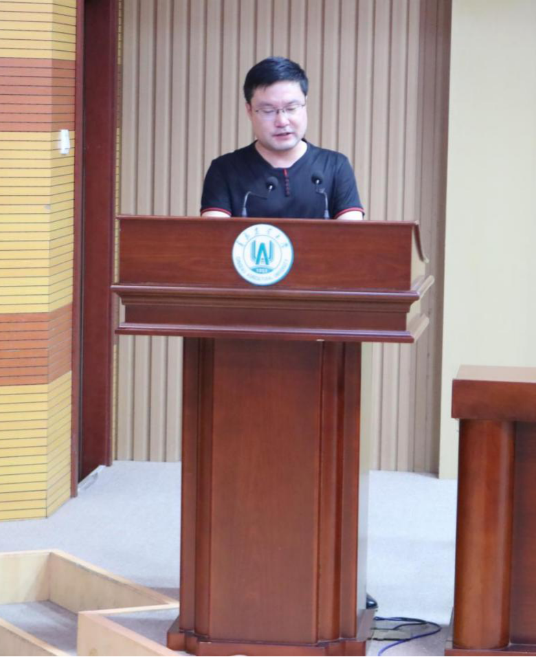 教师代表张磊上台致辞,他希望学子们不畏苦难,勿忘时代使命,祝福学子们坚持梦想,直入青云,祝愿毕业生在新的岗位,新的环境中能够不断进步,取得更大的成就。
