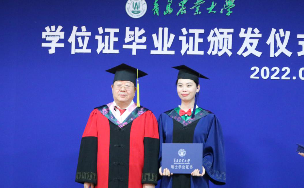 典礼最后一项,由青岛农业大学副校长牟少岩为毕业生们拨穗正冠,颁发毕业证书和学位证书。